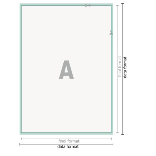 - Important: Starting from the specified format, a 2 mm bleed must be applied all round, important information with at least 4 mm distance to the final format