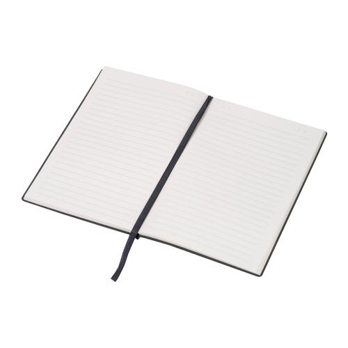 - A5 notebook with a flexible soft cover made of PU, a bookmark, and 192 lined pages made from recycled paper