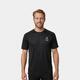 Black polyester men's T-shirt with short sleeves.