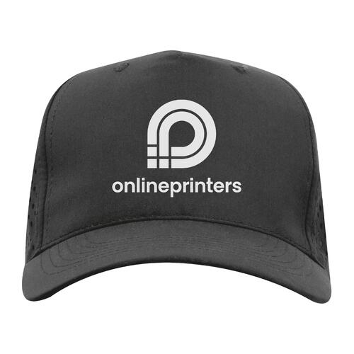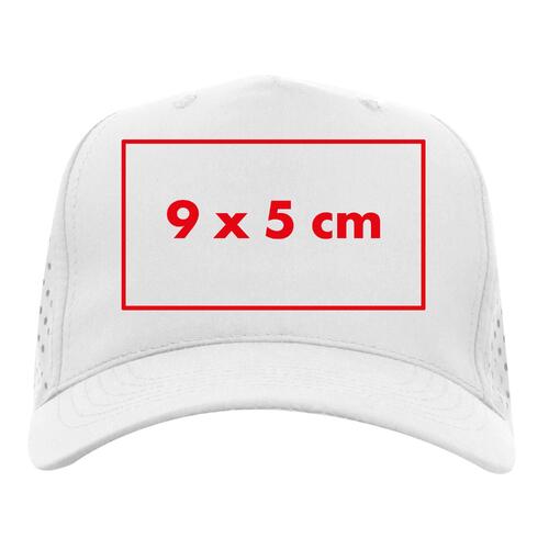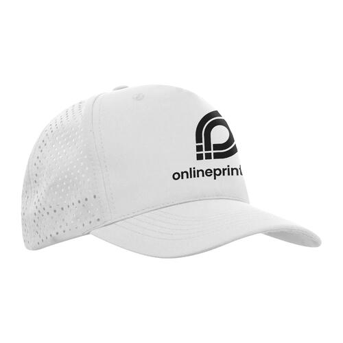 - 5-panel baseball cap made of polyester with a hook-and-loop fastener at the back and an inner sweatband