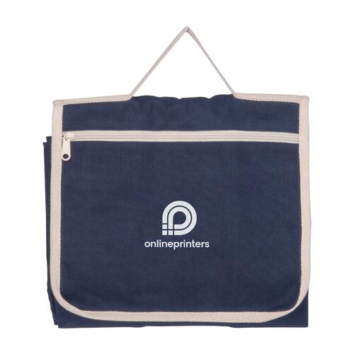 - Picnic blanket made of recycled cotton (fabric weight: 320 gsm), featuring a carrying handle, zippered pocket, and a flap with hook-and-loop closure