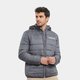 Gray polyester quilted jacket with hood for men.