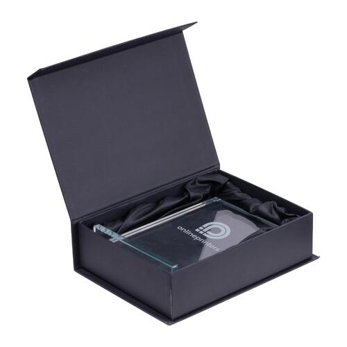 - The trophy is packaged in a gift box with satin lining and magnetic closure