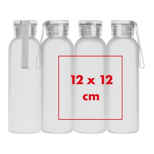 - Drinking bottle made of PET with a rubber carrying handle on the lid and a capacity of 600 ml