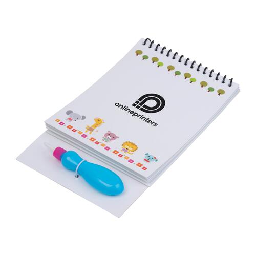 - Simply fill the brush with water and start painting on one of the four pages featuring fun animal motifs