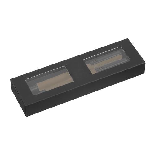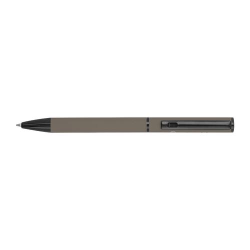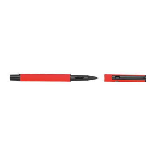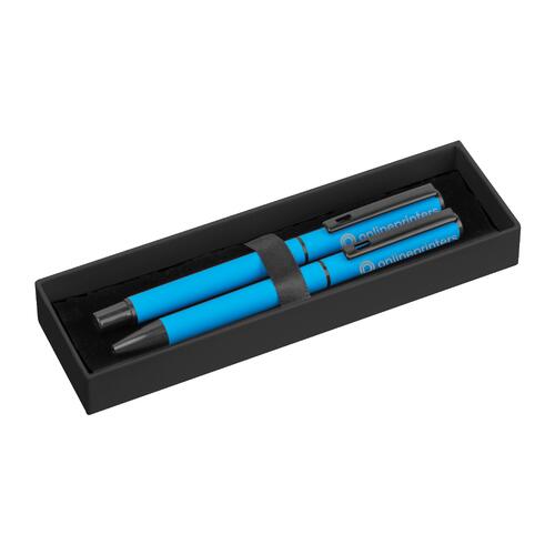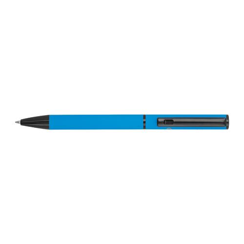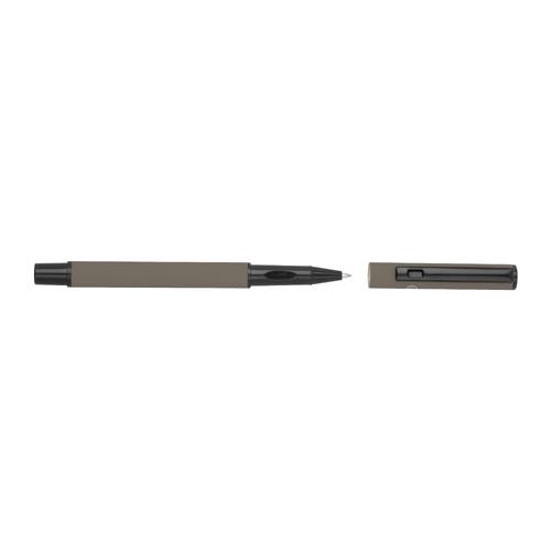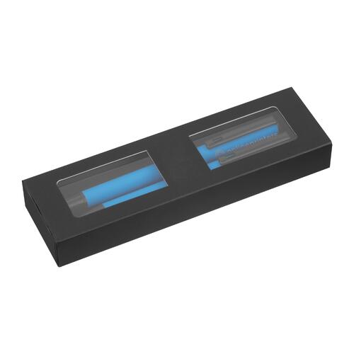 - Writing set made from aluminium consisting of a black-ink rollerball pen and a blue-ink twist ballpoint pen (with large-capacity plastic refill), packaged in a box